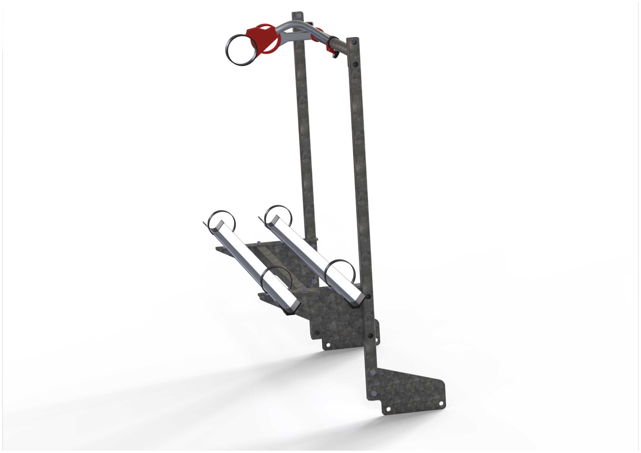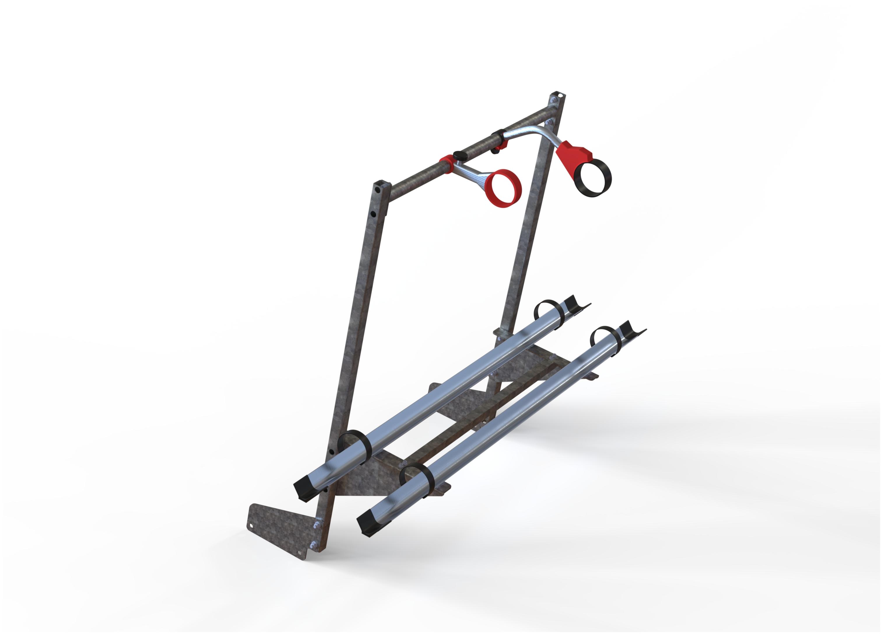 Structure galvanisée à boulonner à l'avant du châssis de la remorque sans modification. Cet accessoire peut recevoir 2 vélos pour un poids maximum de 40kg. Equipé de deux rails et de deux bras de fixation FIAMMA.