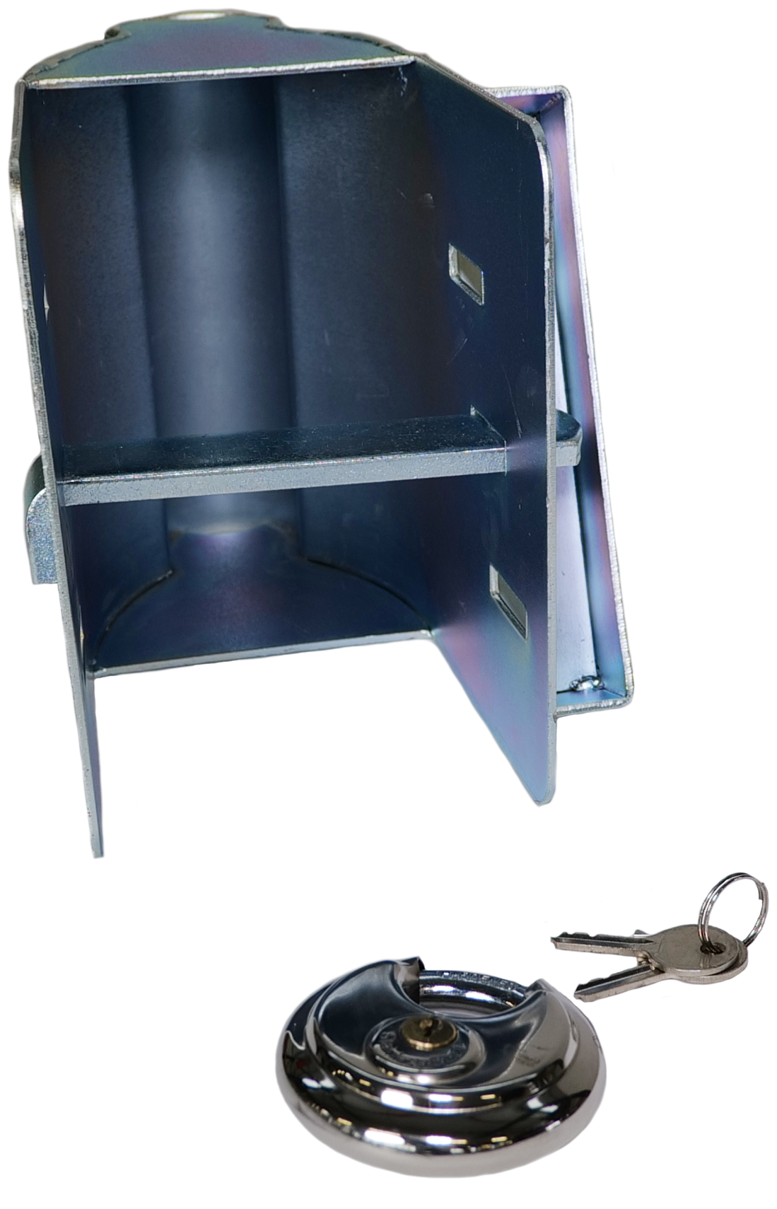 L'antivol coiffant permet de bloquer l'attelage soit en stationnement soit en étant attelé au véhicule. Pour tous les modèles d'attelage. Livré avec cadenas.